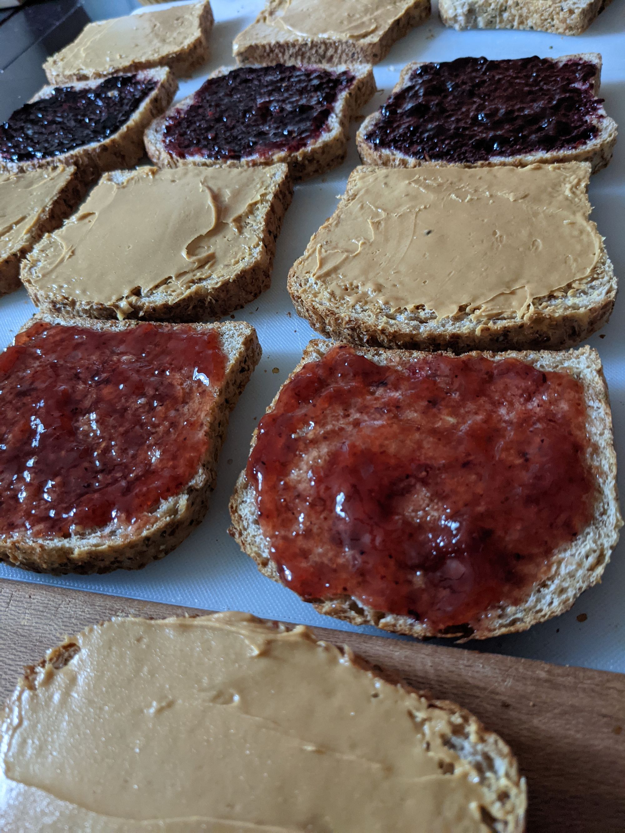 This classic speaks for itself. And it's quite meditative to make a dozen or so peanut butter and jelly sandwiches. If my partner hasn't baked any bread lately, I'll pick up a 2-pack of Dave's Killer Bread from Costco for $9.49. They are a great brand to support because they provide second chances to formerly incarcerated people, and their bread is more nutritious than most of the sliced bread you'll find at the supermarket.