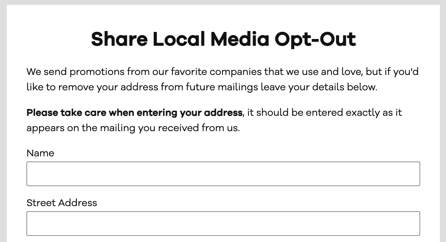Looking to drastically reduce the amount of postal mail you receive? While there's no single unsubscribe or "Do not mail" list, you can tackle a large portion of your unwanted mail by filling out these forms: